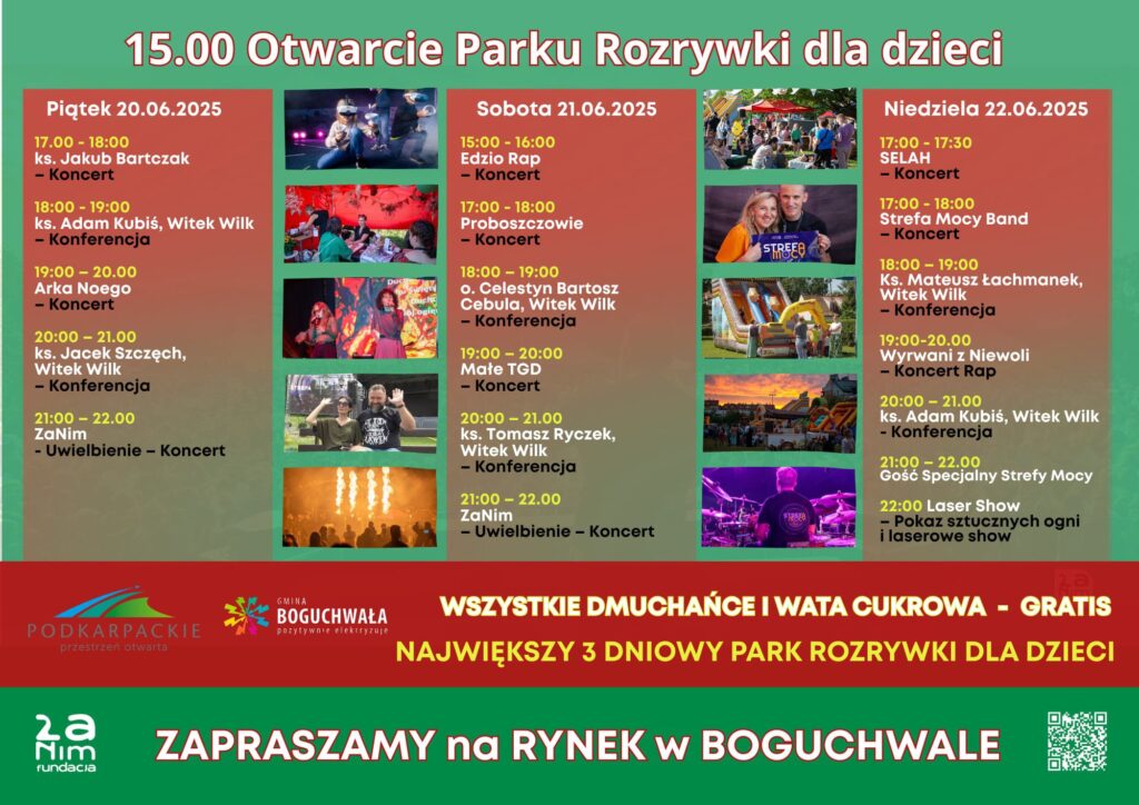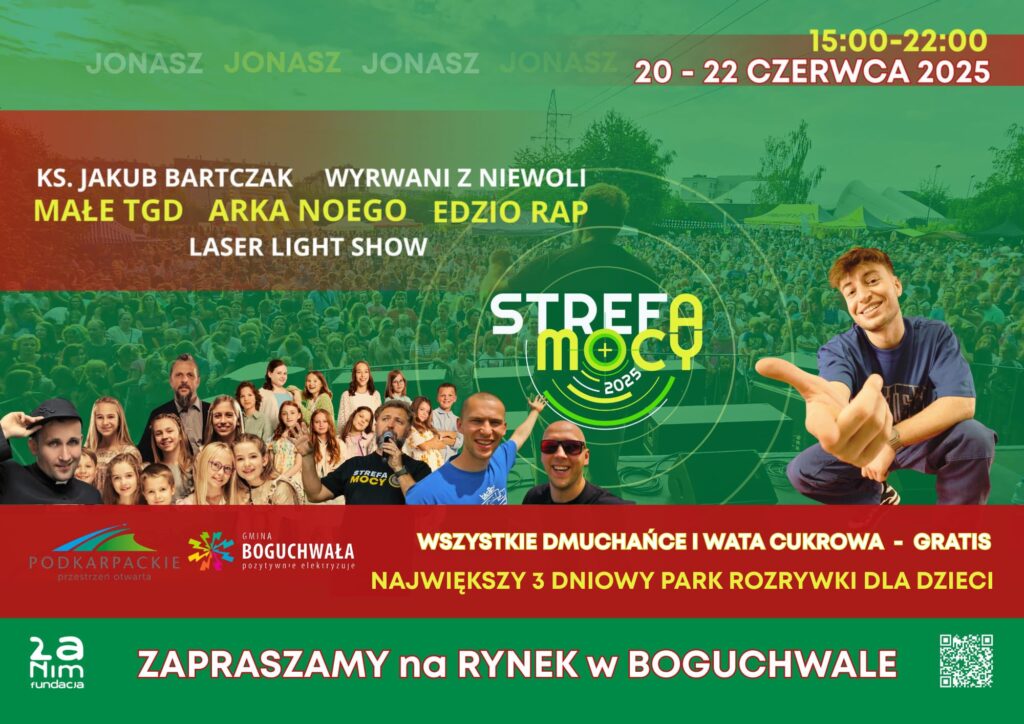 Serdecznie zapraszamy wszystkich na największe diecezjalne plenerowe rekolekcje w formie pikniku rodzinnego Strefa Mocy, które odbędą się w dniach 20–22 czerwca na Rynku w Boguchwale.